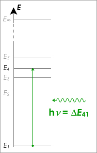 doc 5. Ce diagramme montre l'excitation d'un atome, initialement dans son état fondamental, par absorption d'un photon.