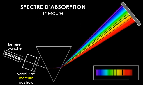doc 8. Les raies d’absorption prouvent la présence de l’atome dans le milieu traversé par la lumière blanche.